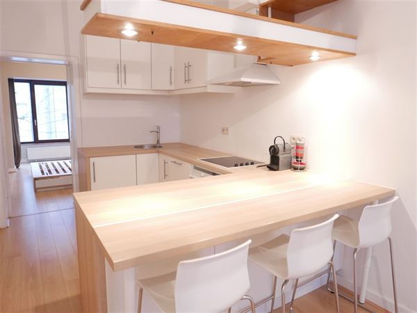 Super uitgeruste keuken van +/- 12m2 + wasruimte en toegang tot een balkon van 2 m2. Mogelijkheid om de keuken te openen naar de woonkamer.